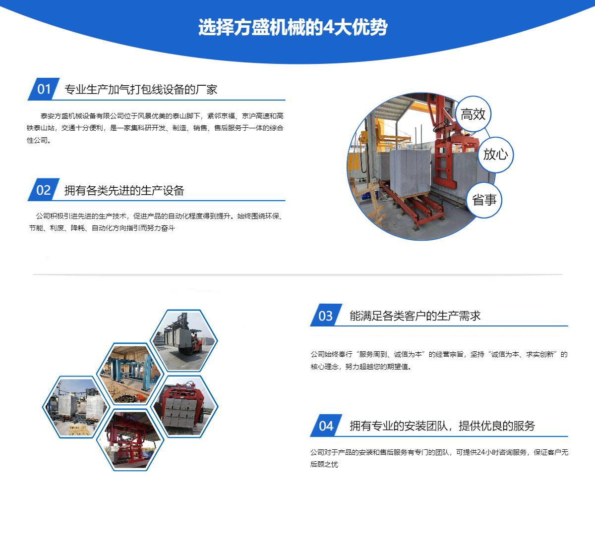 泰安方盛机械设备有限公司位于风景优美的泰山脚下,紧邻京福、京沪高速和高铁泰山站,交通十分便利,是一家集科研开发、制造、销售、售后服务于一体的综合性公司。公司积极引进先进的生产技术,促进产品的自动化程度得到提升。始终围绕环保、节能、利废、降耗、自动化方向指引而努力奋斗。公司始终奉行“服务周到、诚信为本”的经营宗旨,坚持“诚信为本、求实创新”的核心理念,努力超越您的期望值。